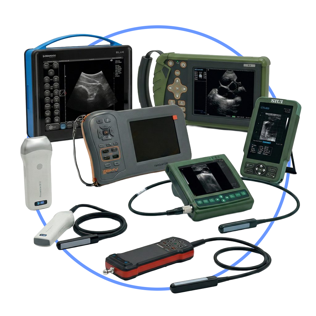 Ecógrafos veterinarios de última generación para diagnóstico reproductivo avanzado.